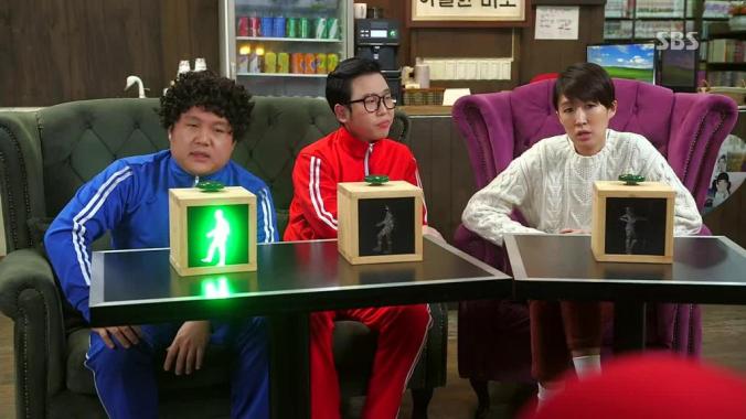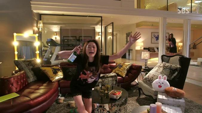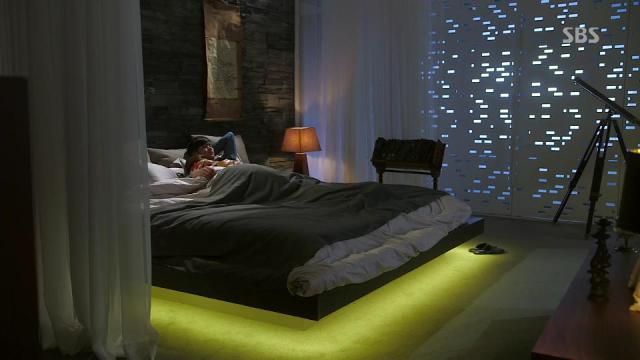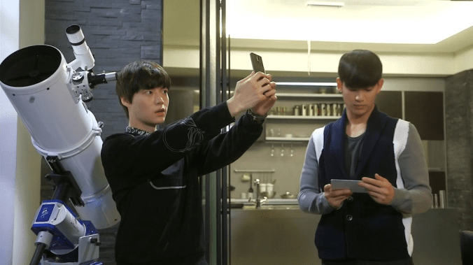 The rest of my love was reserved for their super-sweet apartments. The alien is rich cause he’s been around long enough to amass money. The actress is rich because she’s an A-Lister. And so they both live in ridiculously huge, awesome apartments. Next door to each other. Hers, of course, features many full size pictures of herself (so weird, but I’m used to seeing it now… however, the massive selfie of her face on the bedroom wall was hard to swallow.) Her pad is all tricked out and modern and gorgeous. And alien-boy’s is too (his bedroom in particular is uber-modern and I loved it), though he has a private library where he keeps all his old school knickknacks and memorabilia from the past. There is a distinctive European quality to this library… possibly stemming from the white folks in the oil paintings. I really enjoyed that the creators/writers made full use of the fact these two love birds were neighbors. From encounters in the elevator, the hall, spying on each other through the walls, video door monitors, visiting one another, unexpectedly dropping in or just hanging out of their side-by-side balconies. The neighbor aspect to the romance was cute and well done. And I also enjoyed that this romance did not indulge in the rich/poor angle… almost everyone was wealthy in this show. Equal status footing.