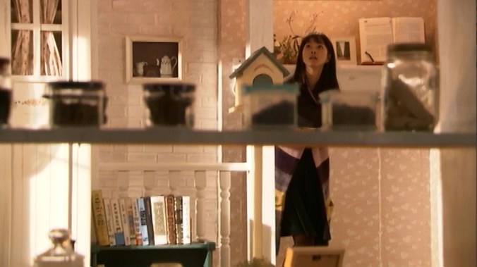 Our grown hero finds his wildcat, naturally. But what’s she been up to all this time? I mean, the girl ran away at the tender age of sixteen. By this time, we know she works at a coffee shop. We know she’s going to oriental medicine school. And we know she’s engaged, sorta, to a deeply lost man who doesn’t love her (who I may talk about later, if the mood strikes, but at the moment I don’t mind abandoning him on the side of the road). Anyways, our wildcat seems to be doing pretty well. Or so we all assume until hero goes to meet her at work – discovers she lives in a small room above the coffee shop… and then takes a peek at her living conditions.