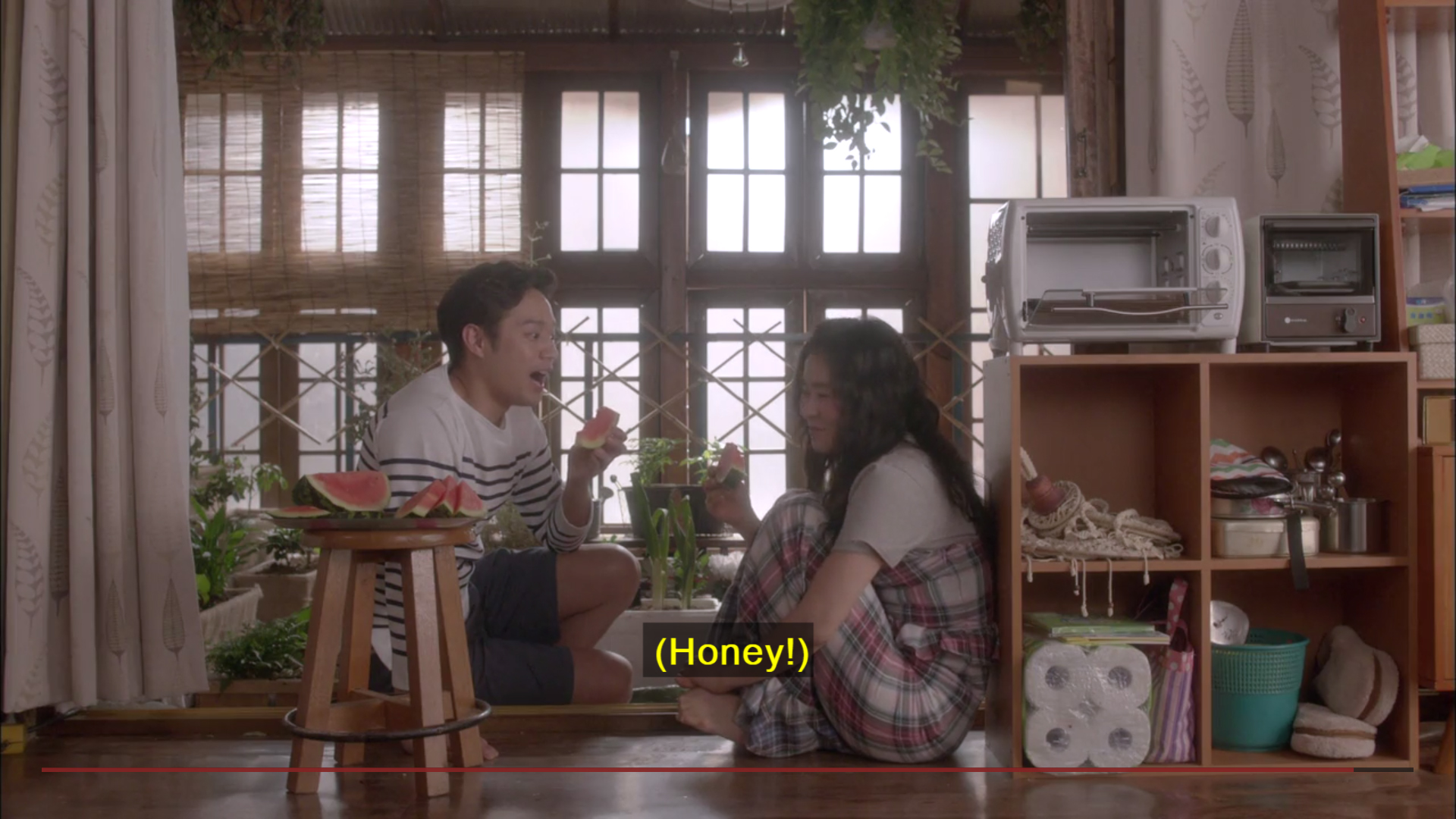 This is a story that deals with mental illness. Our main female character, played by the adorable Choi Gang-Hee (who starred in another one of my favorites Protect The Boss), suffers from social anxiety disorder and extreme facial flushing. Her cheeks always an overtly rosey color, which embarrasses her so much she wears a helmet at all times when outside her home. Around other people, she can color even more – her entire face turning bright red. For this reason, she largely stays at home – only venturing out when she’s wearing a disguise… as an old woman. In the disguise of a grandmother, she is finally able to overcome her anxiety disorders and interact with others. She’s a high school drop out, but incredibly smart. Her small home is cluttered with books and she spends her evenings playing along to quiz shows on the television. She also has nearly perfect recall, too. And a vivid imagination… that leads to funny fantasy sequences involving our male leads, such as this one: