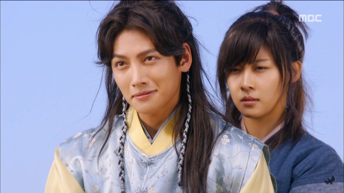 I believed that both the men in this show fell in love with her while she was wearing pants. She had so much freedom, so much expression, so much life in her! It was so short lived, too. Only two or three episodes and bam! Tossed her in the palace – as a maid, as a concubine, as an empress. Gone were the fun days of smiling. So blah. So repressed and sad. The same thing happened in Queen Seondeok but at least we had 20 or so eps of her running around with a personality before she went stone cold bitch queen on us. And that actress is much better at playing a stone cold bitch, too. Han Ji-Won has a different vibe. She’s strong. Interesting. But ruler? Eh….