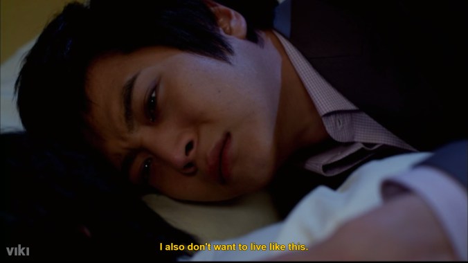 One of my favorite scenes is in Ep 20… when Sunji finally learns his older brother killed his best friend’s mom… damn. Goiso, the nutty bastard, is laughing about, finally revealing the secret to Sunji. And our School Teacher was feeling all smug about his bestie being fired from the police squad until he heard that… then we got to see a little shred of his soul come back.