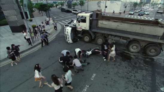 TRAFFIC ACCIDENTS. It’s amazing how common this trope is. You can almost always expect to see speeding, suddenly stopping your car in traffic to reflect on something personal, making a sharp u-turn across multiple lanes of moving traffic, and/or hitting someone with your car. You can also almost always expect to see someone fail to adhere to the obvious rules of crossing a street. How many times have we seen someone just blinding walk out into moving traffic? Mastering the cross walk is clearly too difficult for the average South Korean and undoubtedly most of them need to have their driver’s license revoked.