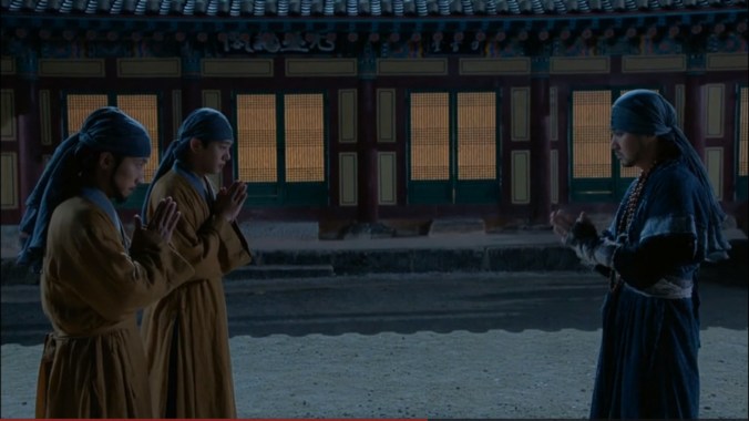 Okay, let’s just talk about Biguk Temple, Episode 6.  Because this is episode that all the key players come together and their roles are established in one glorious sequence of events.  First we have our little Boon Yi taken hostage and interrogated by the baddie Monk Jukryong.  Our scholar hero, Lee Bang-Won,  immediately follows after to rescue her with his trusty bodyguard, Jo Young-Gyoo, in tow – opting for the “disguise” method.