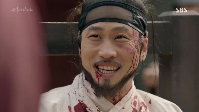There are so many outstanding performances and memorable characters in this drama.  I personally loved Lee Bang-Won’s first bodyguard and life-long follower, Jo Young-Gyoo.  “Loyalty,” he scolds Moo-Hyul.  That’s the only thing he lives by.  He trusts his superiors to figure out the morality.  He’s just a tool to be used and his life has meaning because of it.  The man was a pincushion, too, am I right?  He could be hacked down on the battlefield, stabbed in a street fight, tortured near death, and just bounce right back.  He’d been injured so often he was practically impervious to pain.