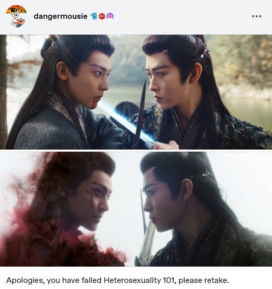Writer: It’s gonna be xianxia opera. The gays are gonna ascend to a new dimension. The fujoshi’s are gonna squeal. At one point we have the two demon boyfriends running across the sea together, chests out, before they swear undying devotion to each other at the sacred tree-